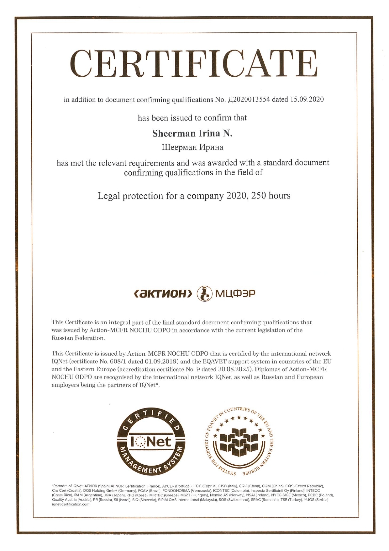 К Ирине Шеерман и ее команде обращаются для проведения комплексного правового аудита, позволяющего выявить и минимизировать проектные риски, в том числе гражданско-правовые и риски привлечения к административной и уголовной ответственности.
